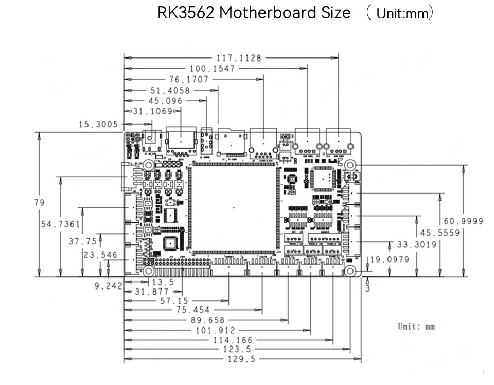 Model: RK3562/RK3562JCPU: quad-core Cortex-A53, Frecvență principală până la 2.0GHZGPU: MALI-G52NPU: 1TOps Computing Power (de calitate industrială RK3562J fără NPU)
